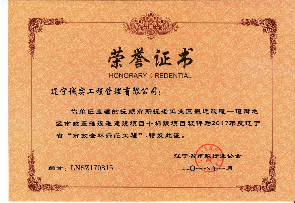 2017年辽宁省“市政金杯示范工程”